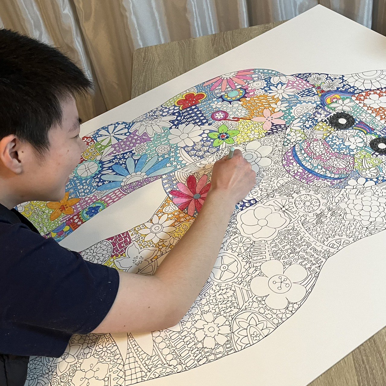 「自分らしいキリンを描いてみよう」と思い立って生まれたのが、今回の作品です。固定概念にとらわれず、自由な色で描かれたキリンは、見ている人をほっとさせる不思議な力があります。「昔は首が長くて怖いと感じていたけど、調べてみたらキリンってすごくかわいくて、素敵なんです」と、キリンに惹かれていった気持ちを話してくれました。そんな想いを一つひとつ色に込めながら、特にツノの色合いを決めるときはワクワクが止まらなかったそうです。「この絵を見た人が、ほっこりした気持ちや優しい気持ちになってくれたら嬉しい」と語ってくれたその言葉通り、yuikoさんの作品には、まるでキャンドルの灯りのような温もりを感じます。