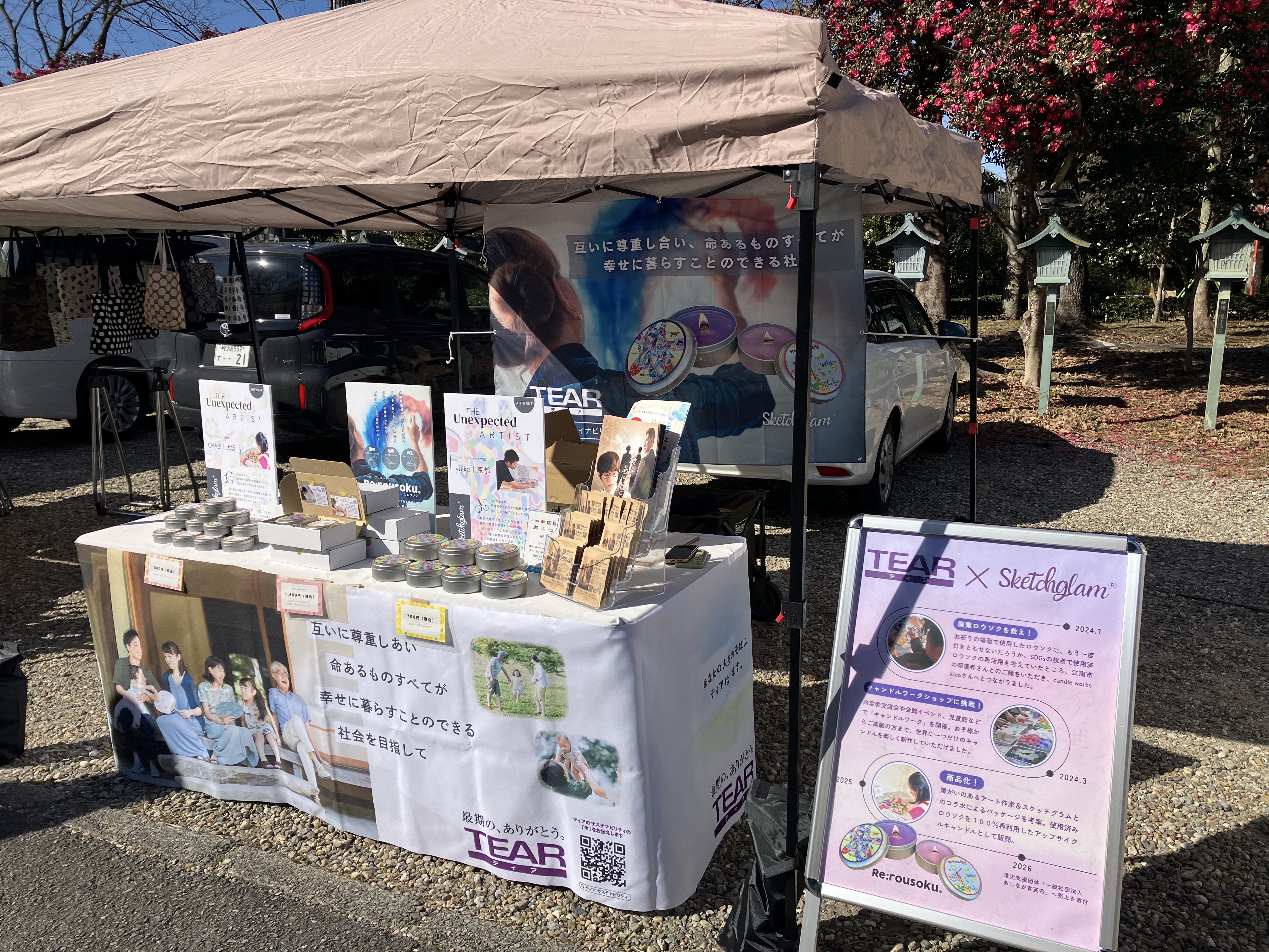 当日は、大寒波到来により、非常に冷え込む1日となりました。それでも朝早くから多くの方が来場され、会場は活気にあふれていました。ティアのブースにも多くの方が足を止めてくださり、「ティアさんならではの素敵な取り組みですね!」といった嬉しいお声をいただきました。キャンドルをご購入いただいた方の中には、「友人へのプレゼントに」「知人への贈り物として」と複数個ご購入くださる方も多くいらっしゃいました。廃棄されるはずだったロウソクが、新しいキャンドルとして生まれ変わり、さらにその先で誰かの手に渡って広がっていく、人から人へと想いがつながっていく瞬間を感じることができ、私たちにとっても大変嬉しい1日となりました。興正寺マルシェにお立ち寄りくださった皆さま、キャンドルにご興味を持ってくださった皆さま、そしてご購入してくださった皆さま、誠にありがとうございました。